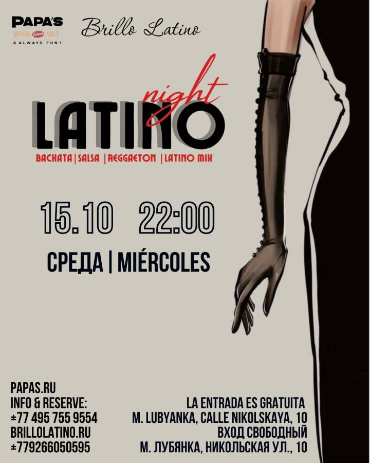15.10.2025 LATINO NIGHT 15.10.25 15.10.2025 15.10.2025 наша LATINO NIGHT в Papa’s Вar Начинаем в 22:00 За пультом DJ Eric Martin Тебя ждет: Латинская музыка и зажигательные ритмы Танцы до утра Атмосфера веселья, дружбы и настоящего латино-духа ВХОД СВОБОДНЫЙ! Акции: уточняй на баре! Адрес: ул. Никольская, д.10! Контакты: +79672038059 Papa’s Bar +79967178551 Алина +79266050595 Екатерина