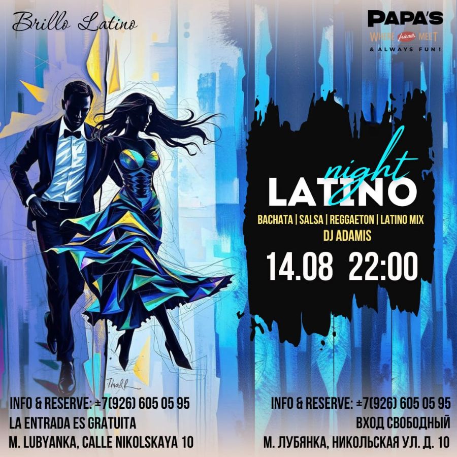 14.08.2025 LATINO NIGHT 14.08.25 14.08.2025 14.08.2025 наша LATINO NIGHT в Papa’s Вar Начинаем в 22:00 За пультом DJ ADAMIS Играют наши любимые бачата, сальса, лучшие реггетон хиты и самые популярные латиноамериканские треки ВХОД СВОБОДНЫЙ! Акции: коктейли и пиво 1+1 Адрес: ул. Никольская, д.10! Контакты: +79672038059 Papa’s Bar +79967178551 Алина +79266050595 Екатерина